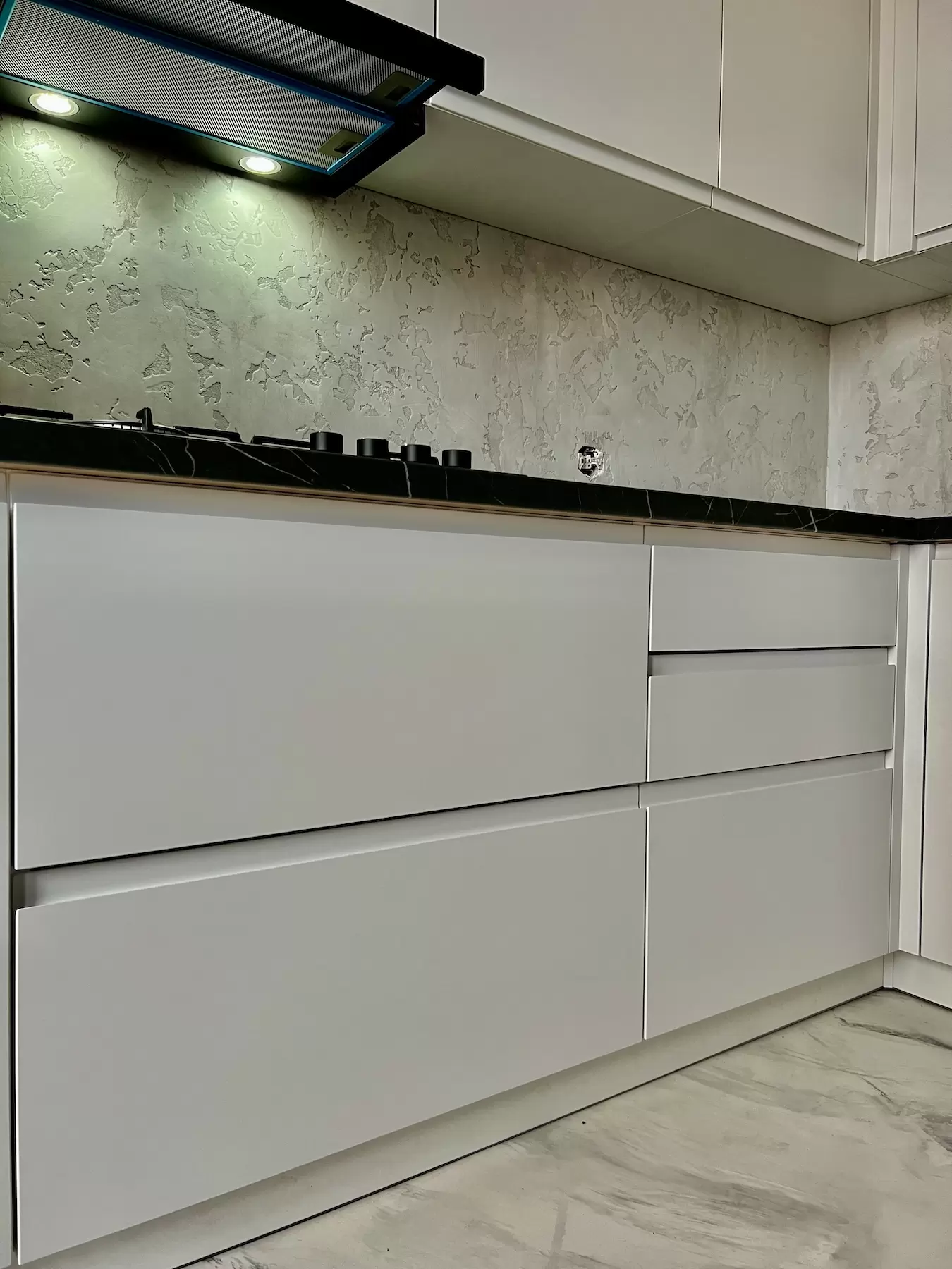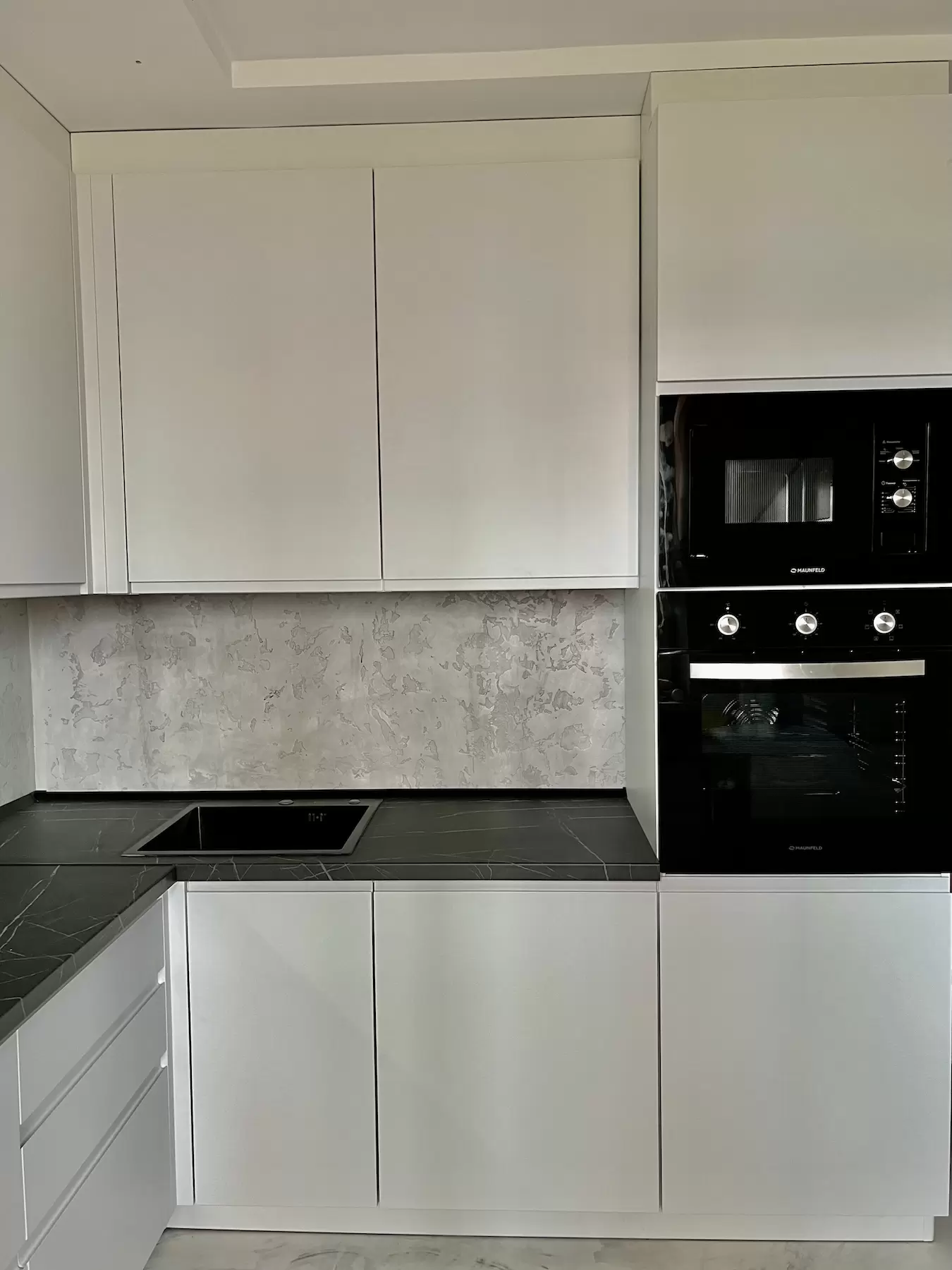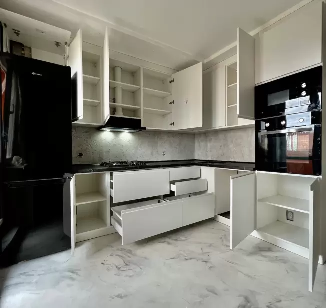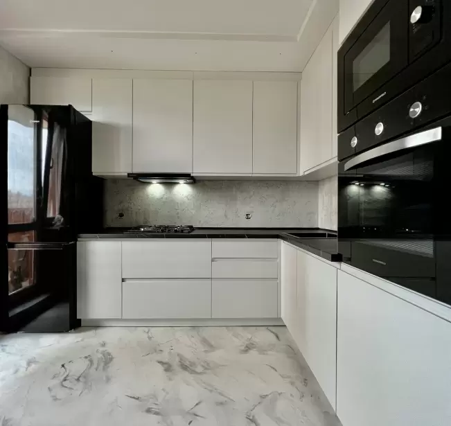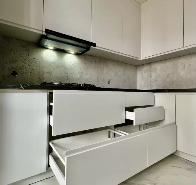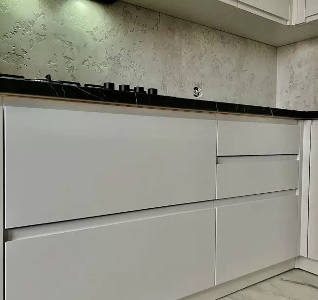 Фасад: Крашеные МДФ с фрезерованной ручкой