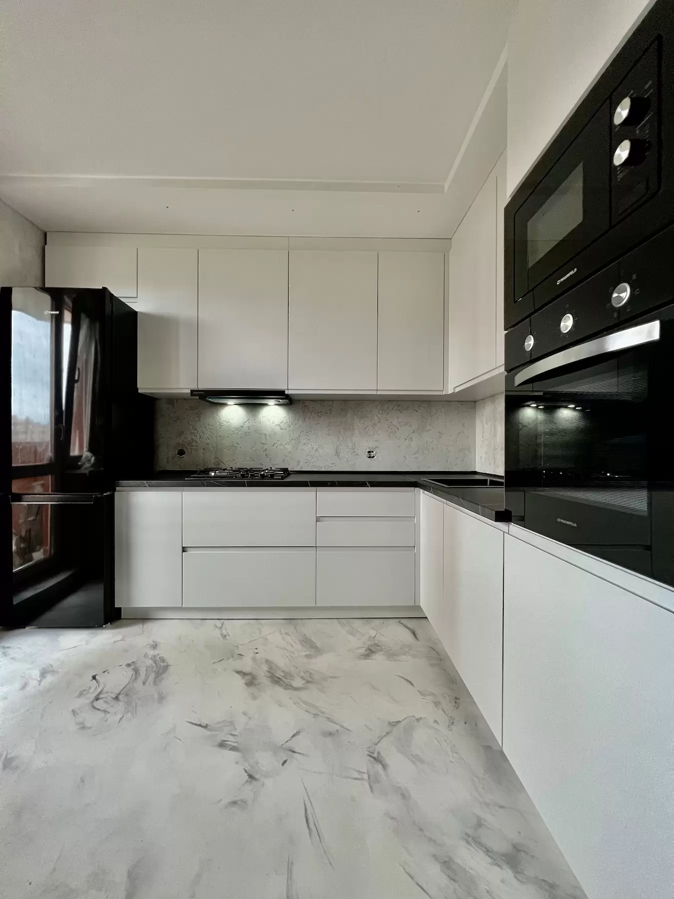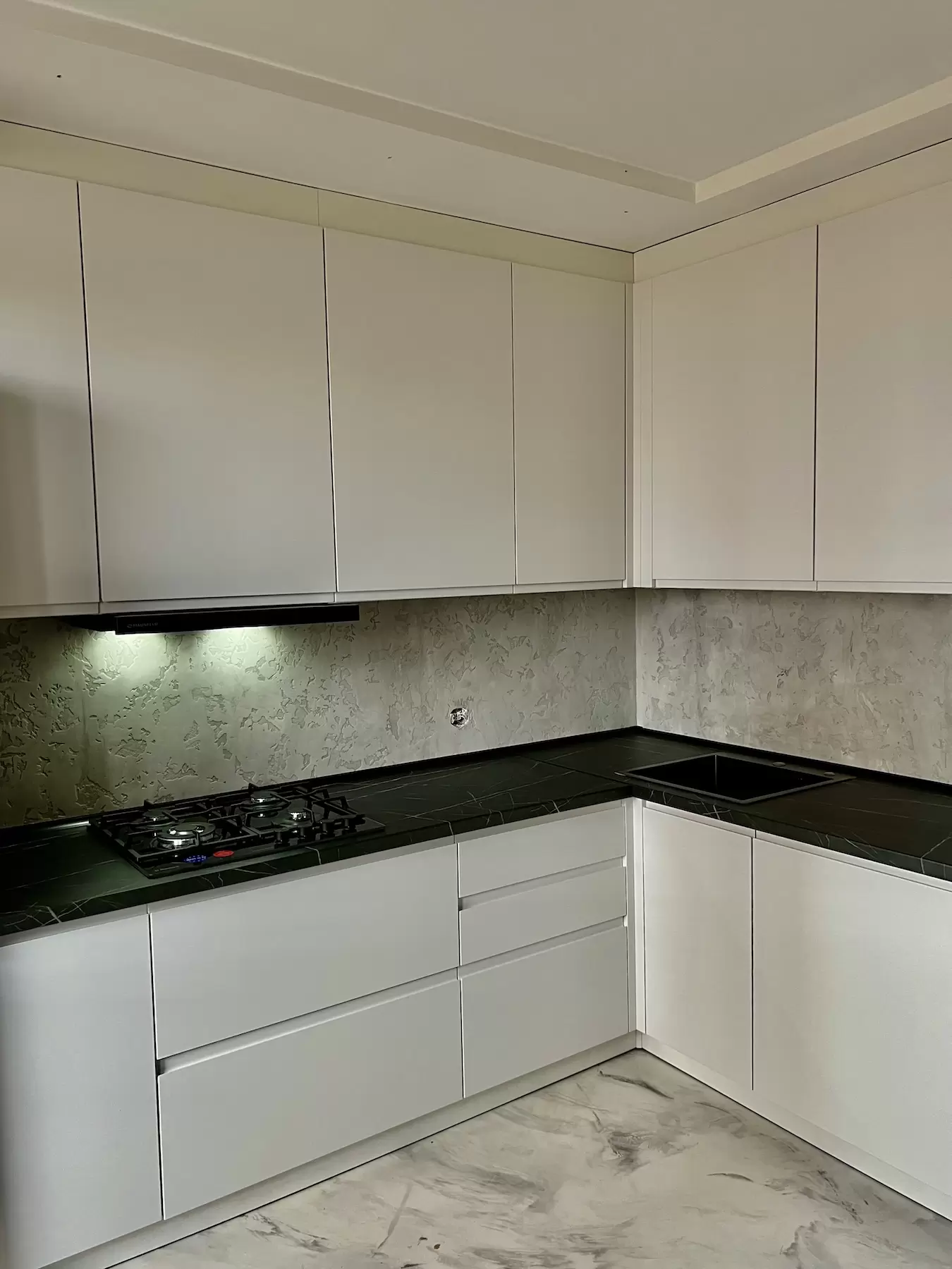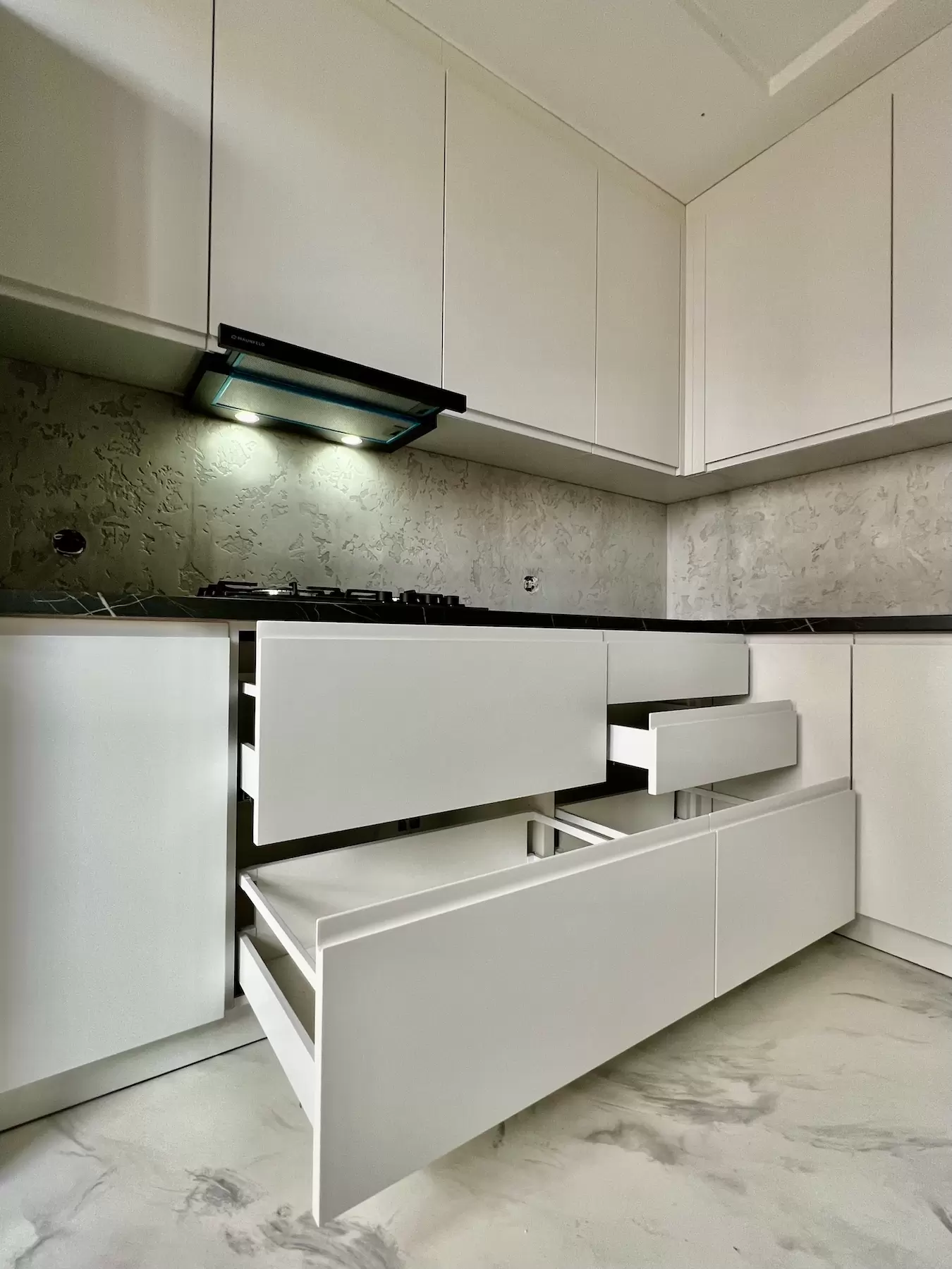 Фасад: Крашеные МДФ с фрезерованной ручкой