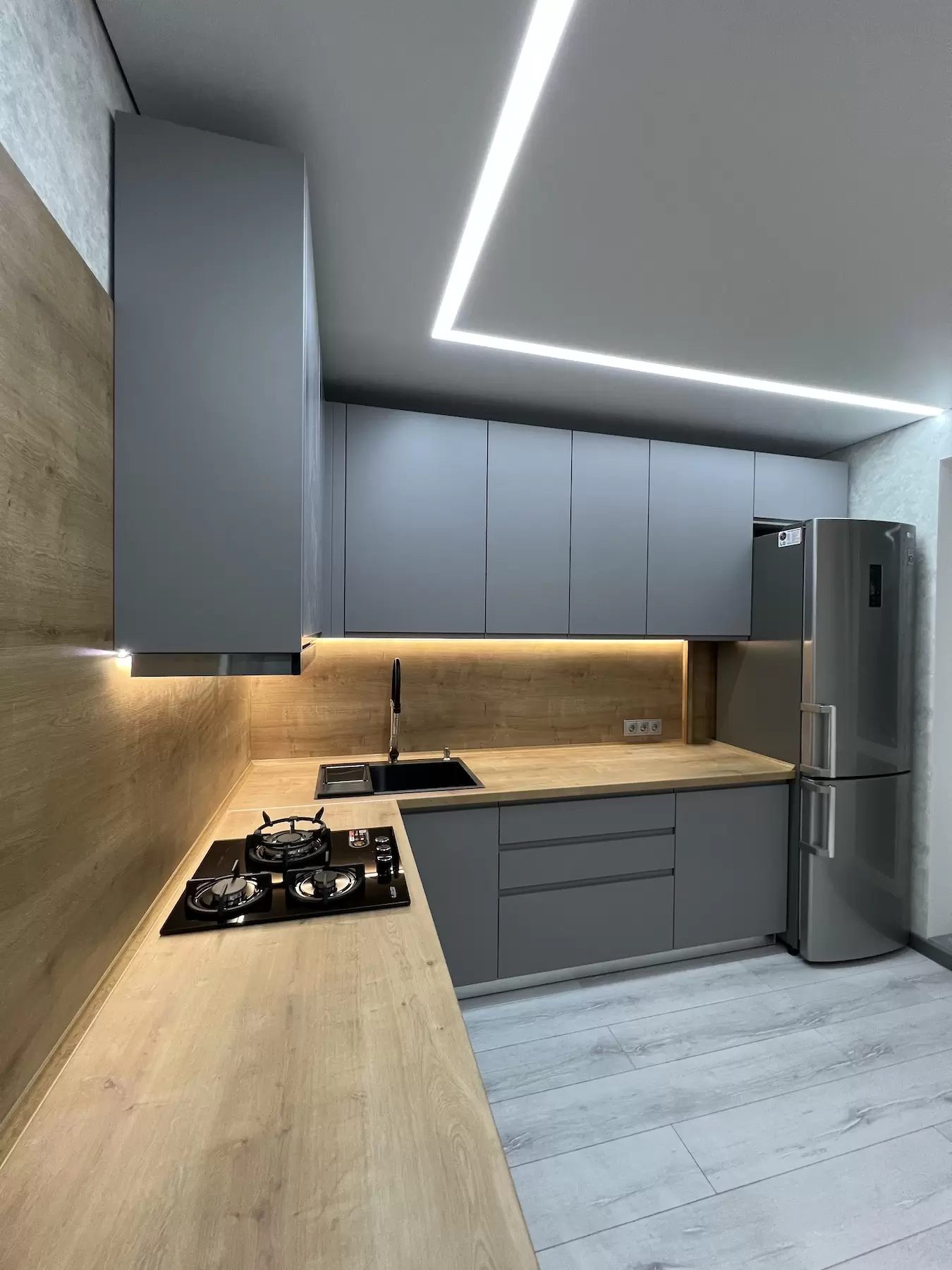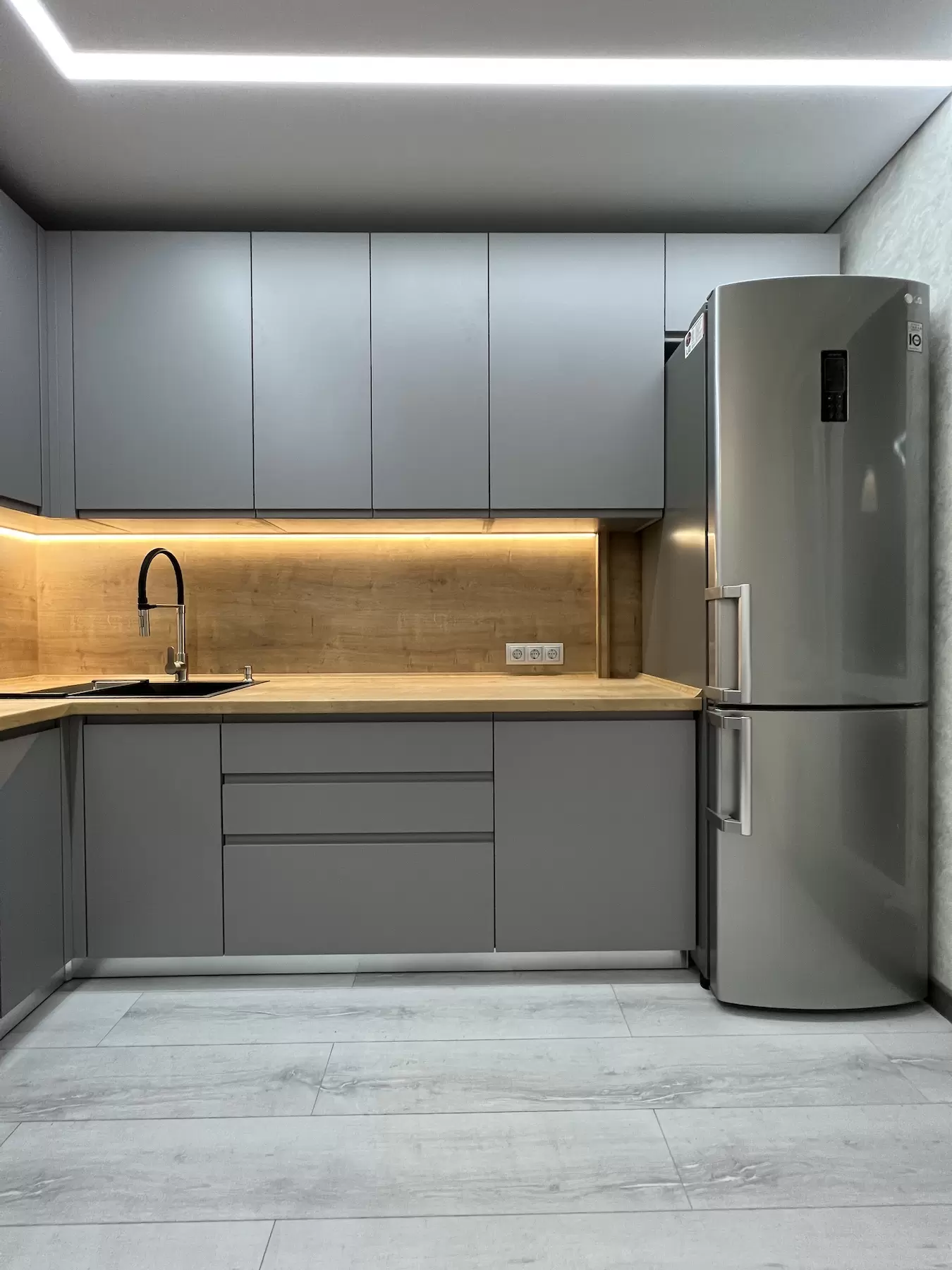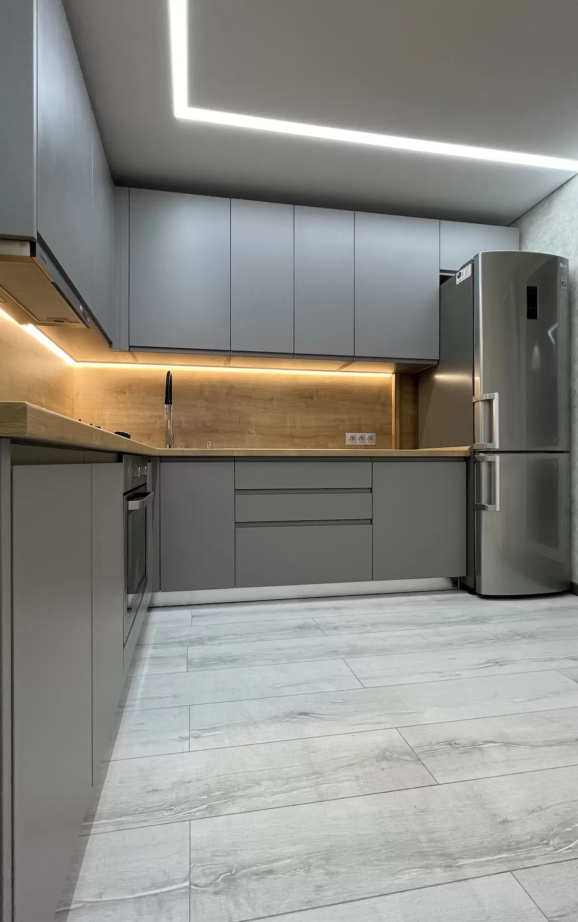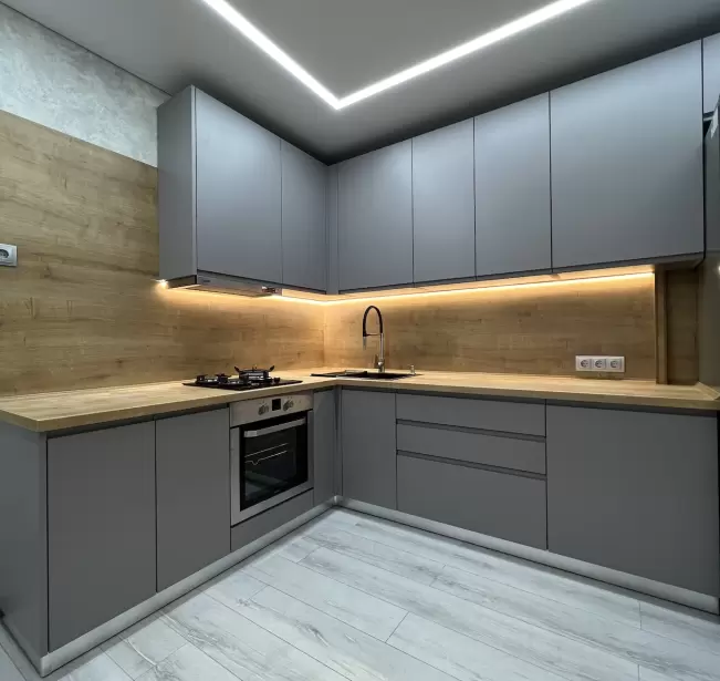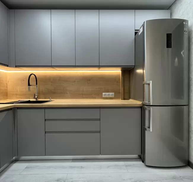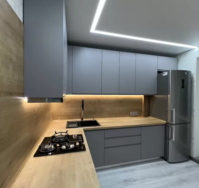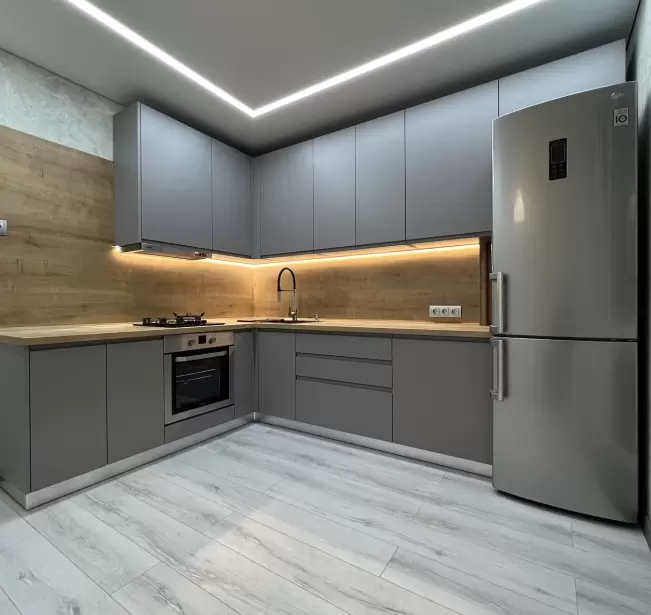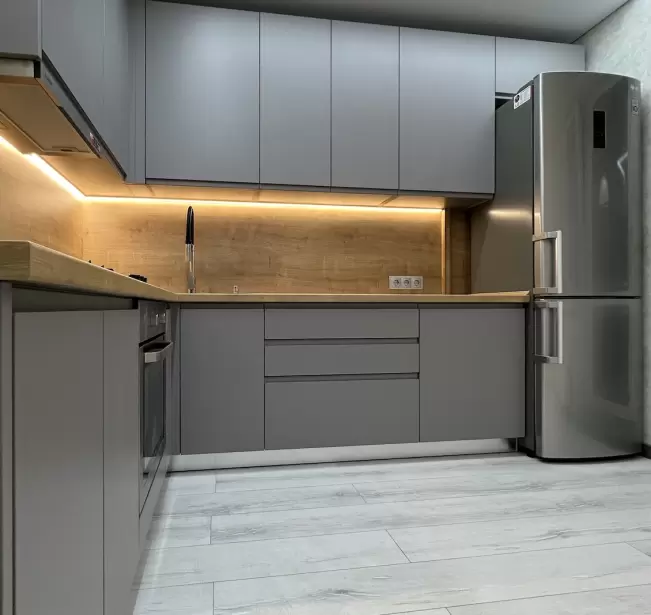 Фасад: Крашеные МДФ с фрезерованной ручкой